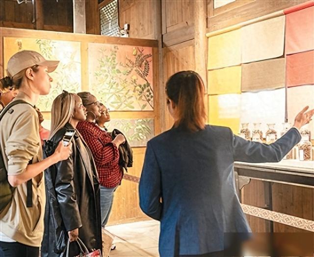 美国游客参观乌江寨和平染坊。乌江寨国际旅游度假区供图