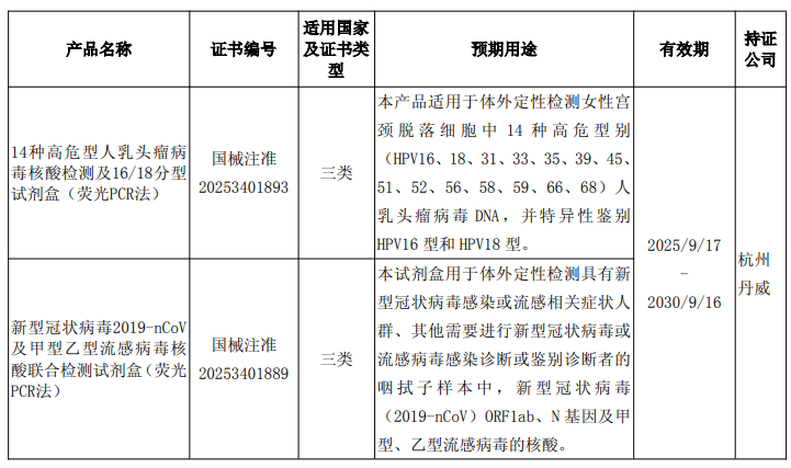 9月22日,东方生物(688298)发布公告,控股子公司杭州丹威生物科技有限公司近日取得了两款医疗器械产品的注册证书。境内医疗器械注册证基本情况如下: